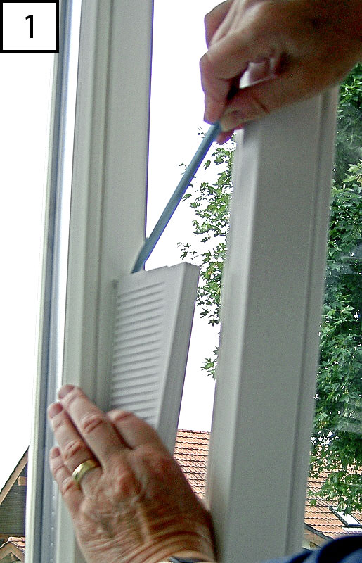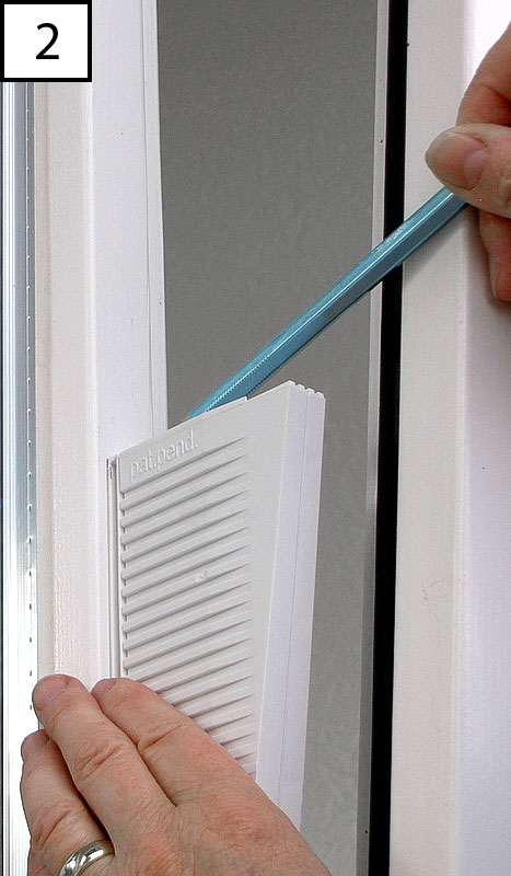 Ouvrir la fenêtre à bascule et marquer la position de Cats-Care sur le châssis de la fenêtre (1 – montage à l'intérieur) ou sur la fenêtre à bascule (2 – montage à l'extérieur).